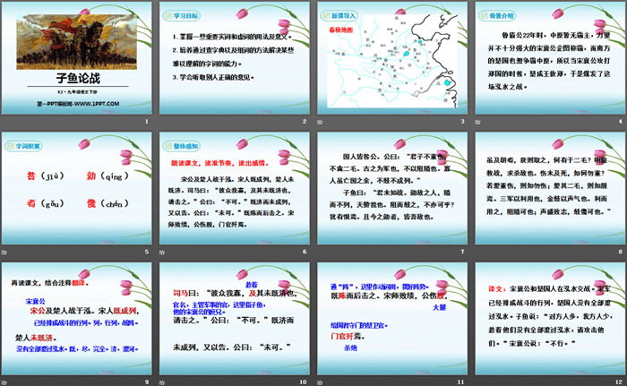 关键词:鄂教版九年级下册语文PPT课件免费下载,子鱼论战PPT下载,.PPT格式;