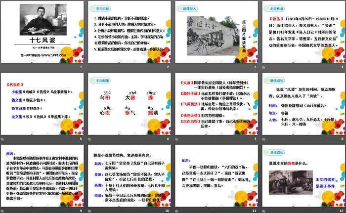 关键词:鄂教版九年级下册语文PPT课件免费下载,风波PPT下载,.PPT格式;