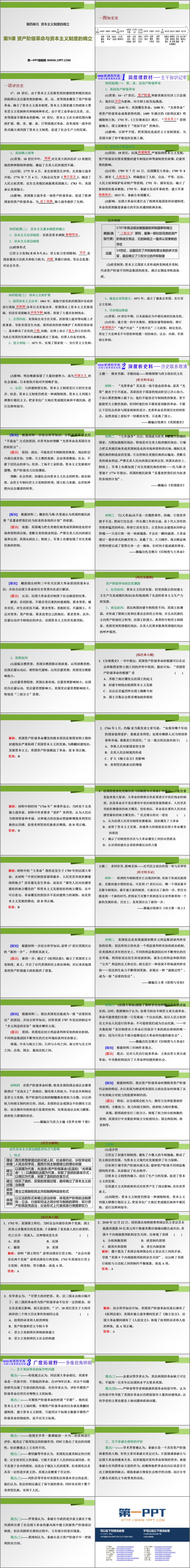 《资产阶级革命与资本主义制度的确立》PPT课件包含知识梳理、史料分析、视野拓展等内容。