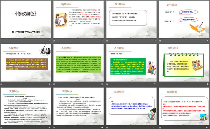 关键词:部编人教版九年级下册语文PPT课件免费下载,修改润色PPT下载,.PPT格式;