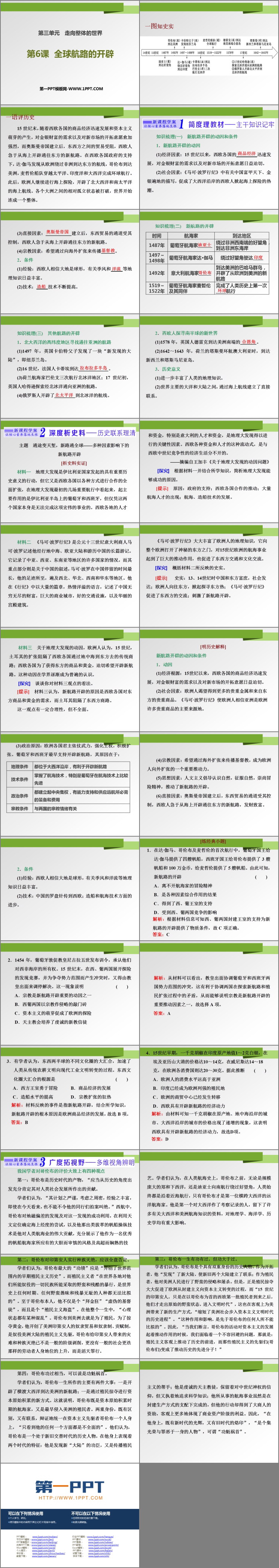 《全球航路的开辟》PPT课件包含知识梳理、史料分析、视野拓展等内容。