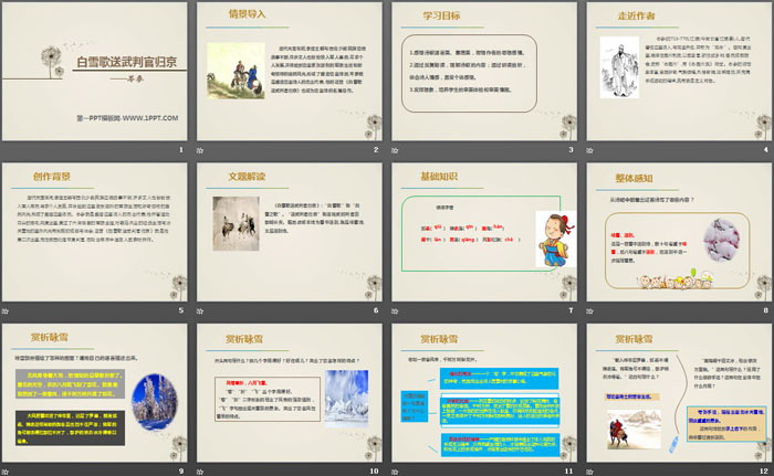 关键词:部编人教版九年级下册语文PPT课件免费下载,白雪歌送武判官归京PPT下载,.PPT格式;