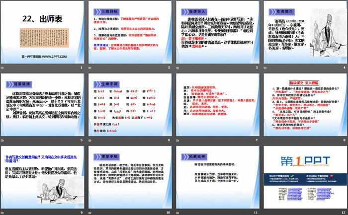 关键词:部编人教版九年级下册语文PPT课件免费下载,出师表PPT下载,.PPT格式;
