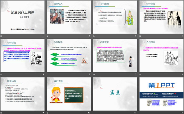 关键词:部编人教版九年级下册语文PPT课件免费下载,邹忌讽齐王纳谏PPT下载,.PPT格式;