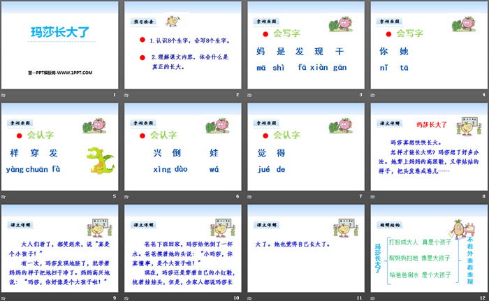 关键词:北师大版一年级上册语文PPT课件免费下载,玛莎长大了PPT下载,.PPT格式;
