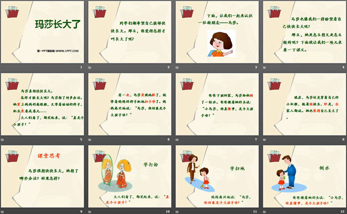 关键词:北师大版一年级上册语文PPT课件免费下载,玛莎长大了PPT下载,.PPT格式;
