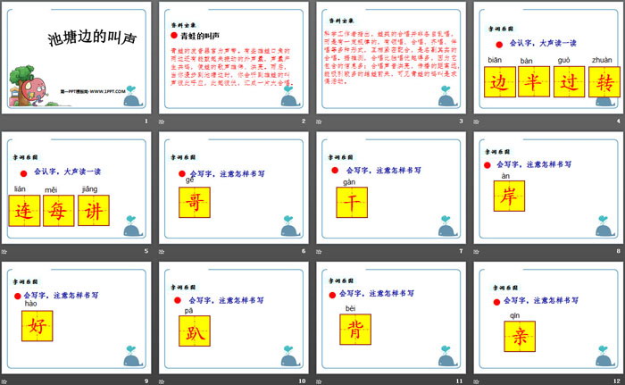 池塘边的叫声PPT,第二部分内容:字词乐园