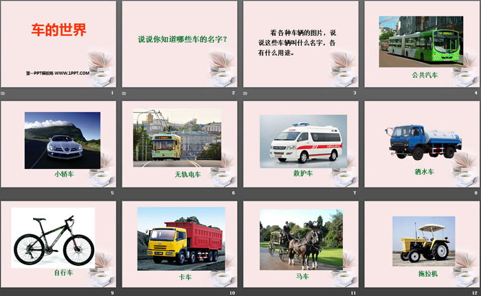 关键词:北师大版一年级下册语文PPT课件免费下载,车的世界PPT下载,.PPT格式;