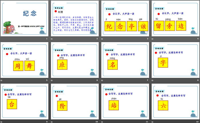 纪念PPT,第二部分内容:字词乐园