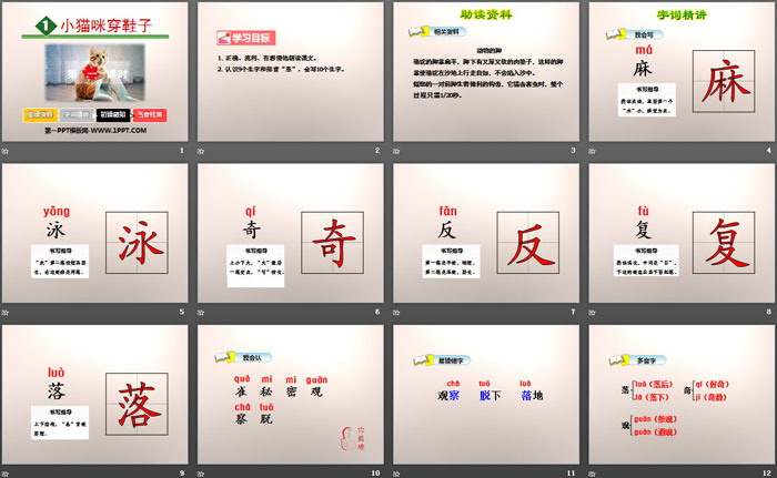 小猫咪穿鞋子PPT,第二部分内容:字词精讲