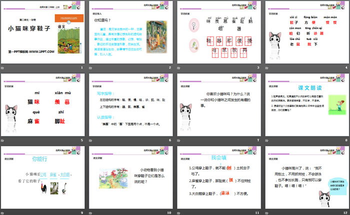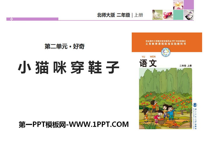 关键词:北师大版二年级上册语文PPT课件免费下载,小猫咪穿鞋子PPT下载,.PPT格式;