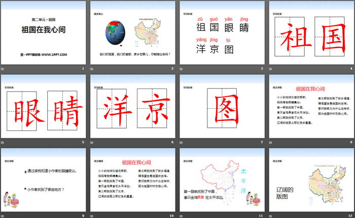 关键词:北师大版二年级上册语文PPT课件免费下载,祖国在我心间PPT下载,.PPT格式;