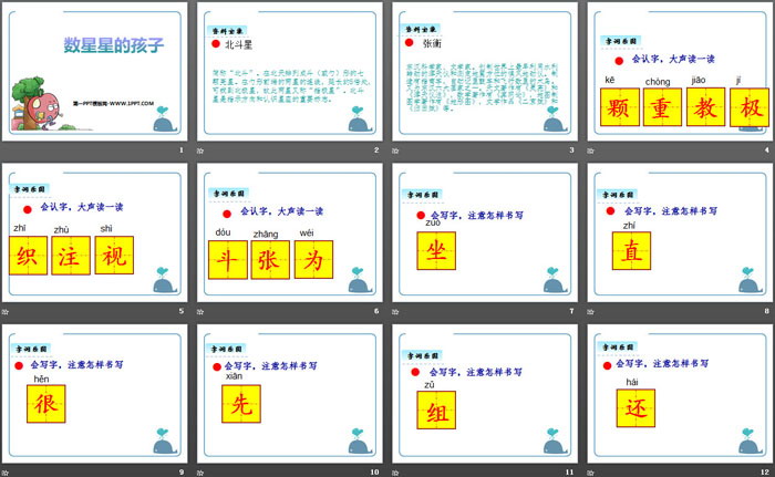 关键词:北师大版一年级下册语文PPT课件免费下载,数星星的孩子PPT下载,.PPT格式;