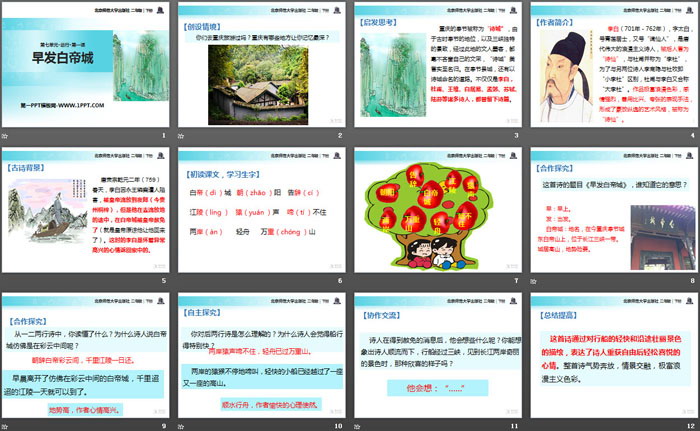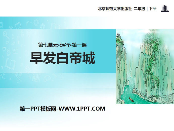 关键词:北师大版二年级下册语文PPT课件免费下载,早发白帝城PPT下载,.PPT格式;