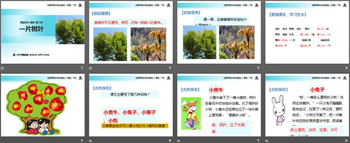 关键词:北师大版二年级下册语文PPT课件免费下载,一片树叶PPT下载,.PPT格式;