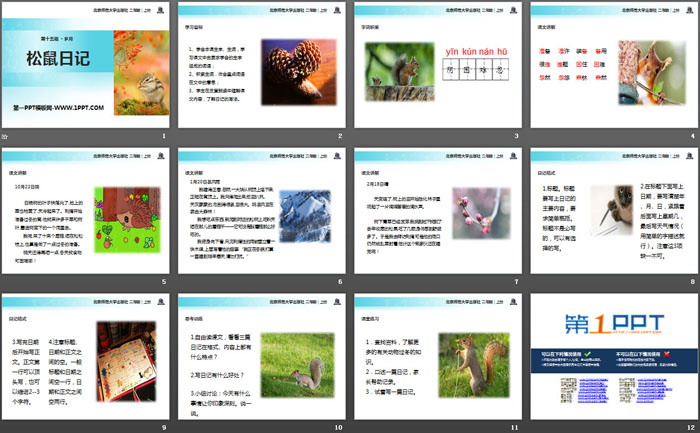 关键词:北师大版二年级上册语文PPT课件免费下载,松鼠日记PPT下载,.PPT格式;