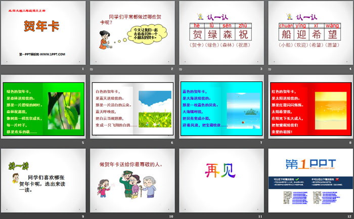 关键词:北师大版二年级上册语文PPT课件免费下载,贺年卡PPT下载,.PPT格式;