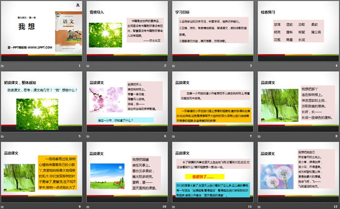 我想PPT,第二部分内容:初读课文,整体感知
