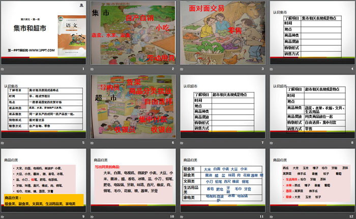 关键词:北师大三年级上册语文PPT课件免费下载,集市和超市PPT下载,.PPT格式;