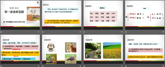 世界上有各种美妙的声音,这些声音不仅需要耳朵听,还需要我们用心去听。今天,我们就来学习——你一定会听见的。