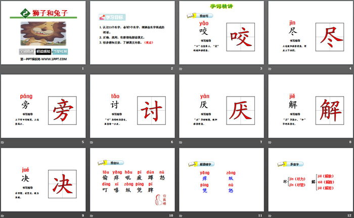 狮子和兔子PPT,第二部分内容:字词精讲