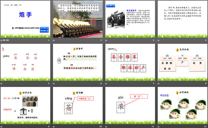 关键词:北师大三年级下册语文PPT课件免费下载,炮手PPT下载,.PPT格式;