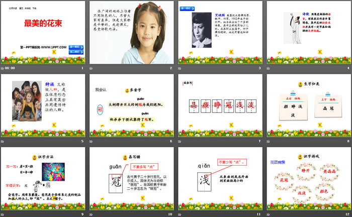 关键词:北师大三年级下册语文PPT课件免费下载,最美的花束PPT下载,.PPT格式;