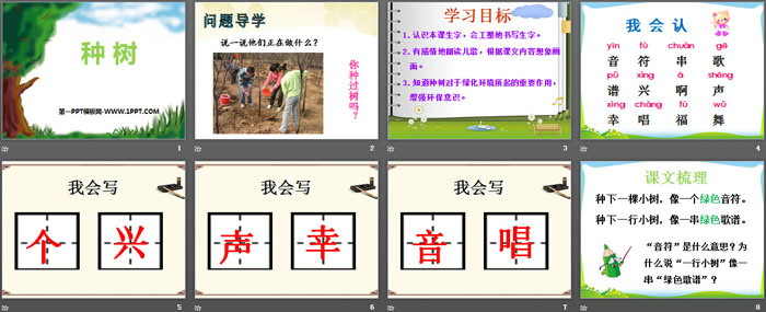 关键词:西师大版一年级下册语文PPT课件免费下载,种树PPT下载,.PPT格式;