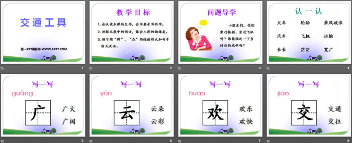 关键词:西师大版一年级下册语文PPT课件免费下载,交通工具PPT下载,.PPT格式;