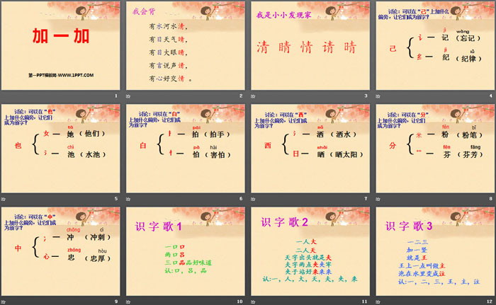 关键词:西师大版一年级上册语文PPT课件免费下载,加一加PPT下载,.PPT格式;