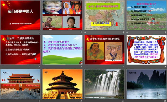 关键词:西师大版一年级上册语文PPT课件免费下载,我们都是中国人PPT下载,.PPT格式;