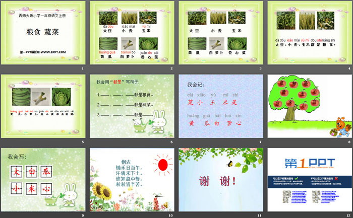 关键词:西师大版一年级上册语文PPT课件免费下载,粮食蔬菜PPT下载,.PPT格式;