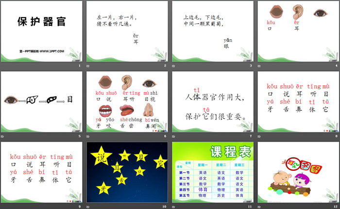 关键词:西师大版一年级上册语文PPT课件免费下载,保护器官PPT下载,.PPT格式;