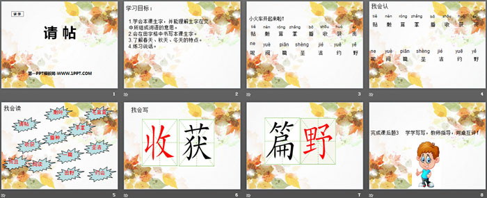 请帖PPT,第二部分内容:我会认
