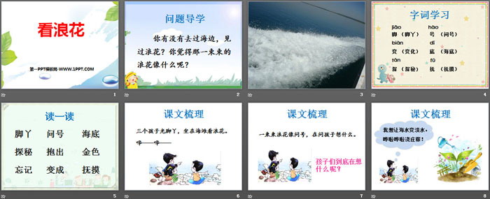 关键词:西师大版一年级下册语文PPT课件免费下载,看浪花PPT下载,.PPT格式;