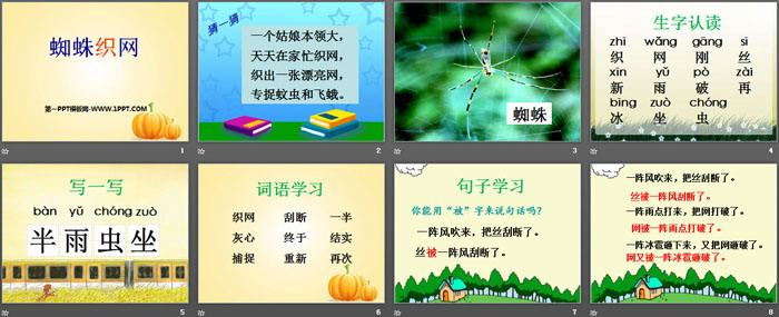 蜘蛛织网PPT,第三部分内容:句子学习