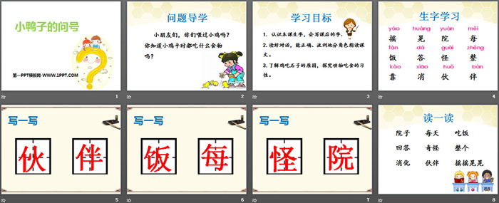 关键词:西师大版一年级下册语文PPT课件免费下载,小鸭子的问号PPT下载,.PPT格式;