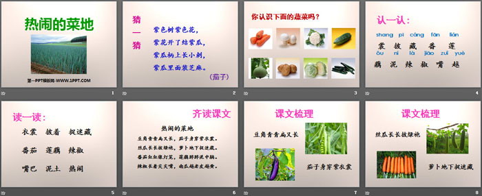 关键词:西师大版一年级下册语文PPT课件免费下载,热闹的菜地PPT下载,.PPT格式;