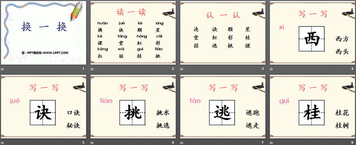 关键词:西师大版一年级下册语文PPT课件免费下载,换一换PPT下载,.PPT格式;