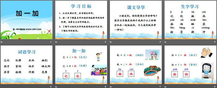 关键词:西师大版一年级下册语文PPT课件免费下载,加一加PPT下载,.PPT格式;