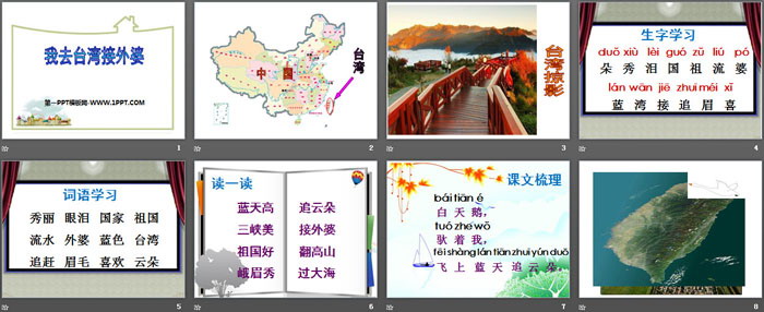 关键词:西师大版一年级下册语文PPT课件免费下载,我去台湾接外婆PPT下载,.PPT格式;