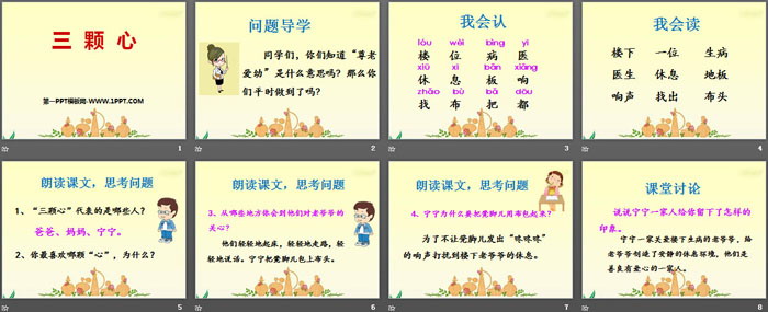 三颗心PPT,第二部分内容:朗读课文,思考问题