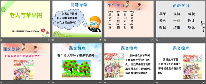 关键词:西师大版一年级下册语文PPT课件免费下载,老人与苹果树PPT下载,.PPT格式;