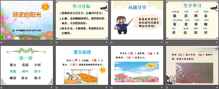 关键词:西师大版一年级下册语文PPT课件免费下载,顽皮的阳光PPT下载,.PPT格式;