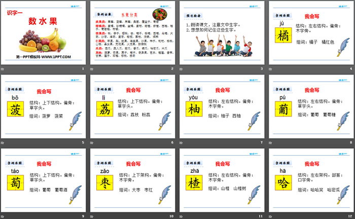 数水果PPT,第二部分内容:字词乐园