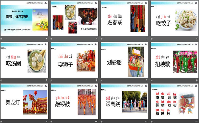 关键词:西师大版二年级上册语文PPT课件免费下载,春节你不要走PPT下载,.PPT格式;