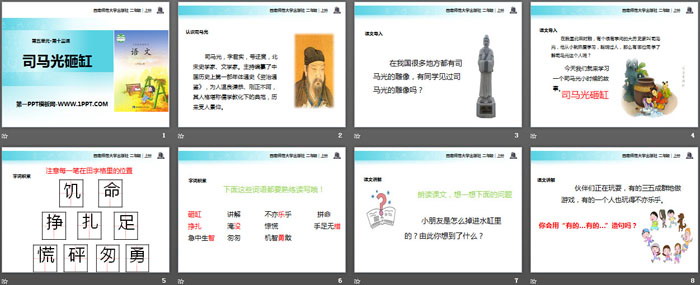 关键词:西师大版二年级上册语文PPT课件免费下载,司马光砸缸PPT下载,.PPT格式;