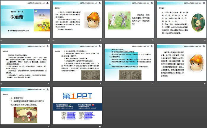 关键词:西师大版二年级上册语文PPT课件免费下载,采蘑菇PPT下载,.PPT格式;