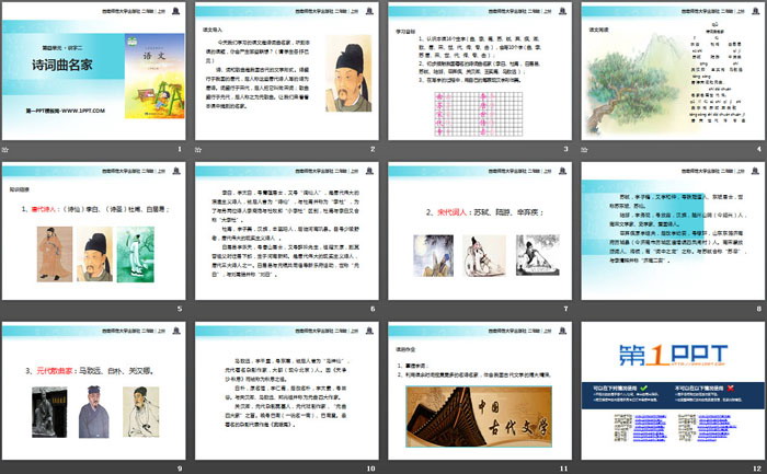 关键词:西师大版二年级上册语文PPT课件免费下载,诗词曲名家PPT下载,.PPT格式;