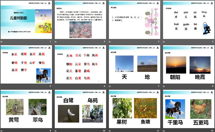 关键词:西师大版二年级上册语文PPT课件免费下载,儿童对韵歌PPT下载,.PPT格式;
